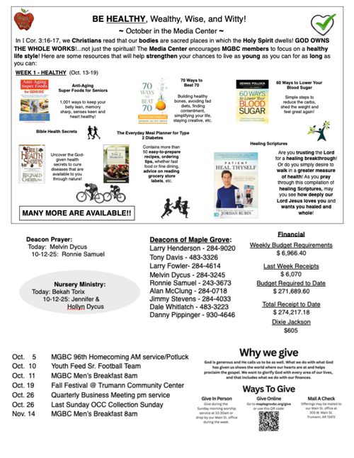 The bulletin displayed is the current week's bulletin, which is updated on Saturdays. For previous bulletins, please click the button below